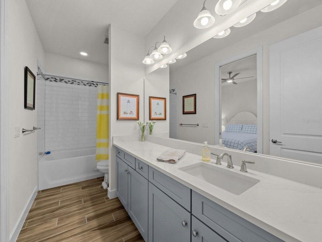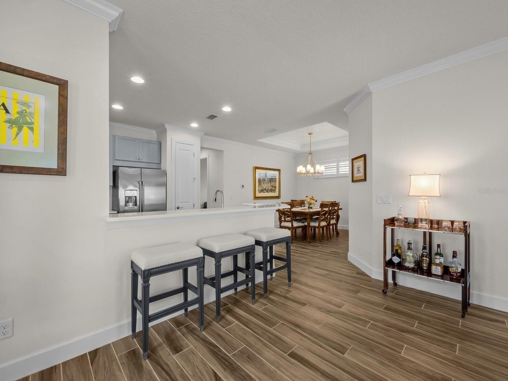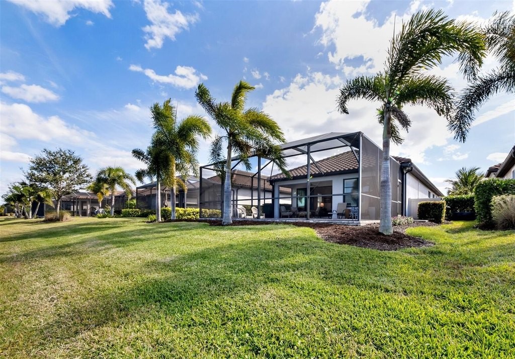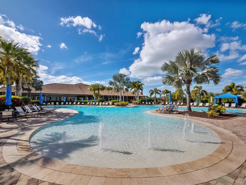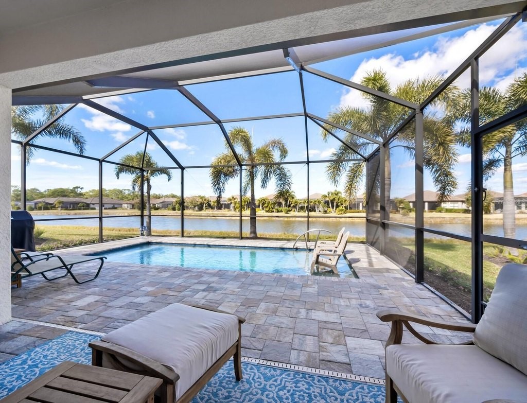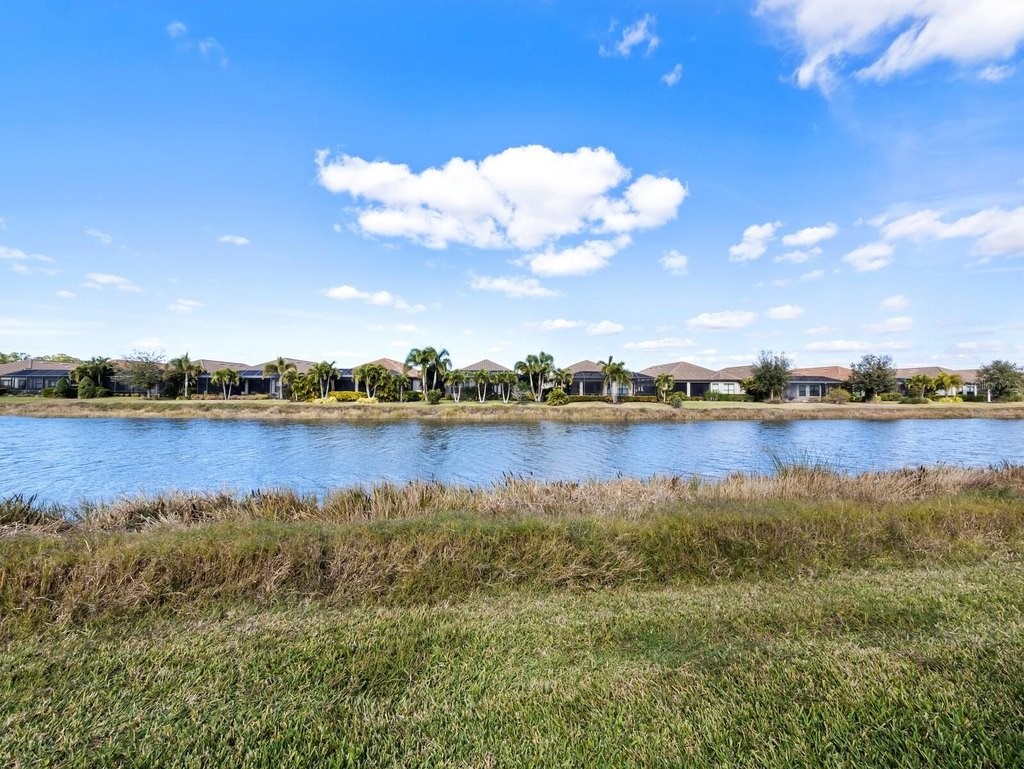 Cheers to the resort lifestyle you've been dreaming of in the highly desirable, gated Esplanade on Palmer Ranch! This stunning maintenance-free waterfront villa with a private pool offers luxury, comfort, and thoughtful upgrades, all within a vibrant, amenity-rich community with no CDD fees. This Nantucket inspired, light-filled 3-bedroom, 2-bath Arezzo model features a thoughtfully designed open floor plan with soaring ceilings, wood-look plank tile flooring, 8-foot doors, tray ceilings with crown molding and shiplap inlay, and elegant neutral tones throughout. The spacious living and dining areas flow seamlessly, creating the perfect space for entertaining or everyday living. A private office/den with pocket slider doors with glass inserts provides flexibility for working from home or pursuing hobbies. The delightful Chef's kitchen makes cooking a breeze with its Quartz countertops, stainless steel appliances, gas cooktop, farmhouse sink, soft-close cabinetry, and stylish backsplash-all overlooking serene lake and pool views. The split-bedroom layout ensures privacy, with the primary suite serving as a true retreat featuring breathtaking water views, a generous walk-in closet, and a spa-inspired ensuite bath with dual vanities, glass-enclosed walk-in shower, and designer finishes. Guest bedrooms are spacious, filled with natural light, and offer ample closet space, with one bath doubling as an ensuite. Step outside to your screened lanai, where a heated pool and a peaceful lakefront setting create the ultimate indoor-outdoor living experience. Additional builder upgrades include whole house impact windows and doors, extended 4' garage, garage attic stairs, 8' solid core doors, multiple pocket doors, and radiant barrier insulation. Recent owner updates include lighting fixtures, ceiling fans, plantation shutters, laundry room cabinets, laundry entry door with glass insert to maximize natural light, newer refrigerator, range, and carpet in bedrooms. Esplanade on Palmer Ranch offers a true resort-style lifestyle, complete with a Lifestyle Director, elegant amenity center, Bahama Bar and restaurant, catering kitchen, fitness center, wellness services, yoga and aerobics studios, resort pool and spa, fire pit, tennis, pickleball, bocce ball, dog parks, walking trails, playground, splash pad, food trucks, community events-and a private entrance to the Legacy Bike Trail. Golf carts are welcome, adding to the fun and social atmosphere. This lot was selected by the homeowner due to its amazing water view and its close proximity to both the amenity center and Legacy Trail. Ideally located near Siesta Key and Nokomis beaches, top-rated schools, shopping, dining, entertainment, Costco, and all that Sarasota and Venice have to offer-this home truly has it all. Don't miss the opportunity to own this exceptional waterfront home where luxury, convenience, and resort living come together beautifully.